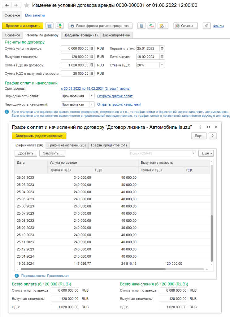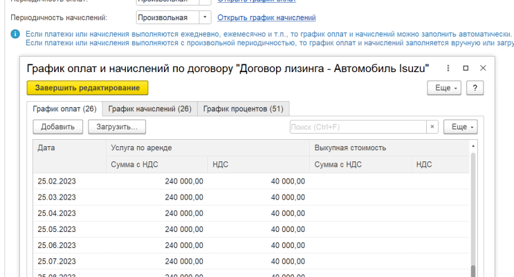 - Расчет ежемесячных и годовых выплат по лизингу