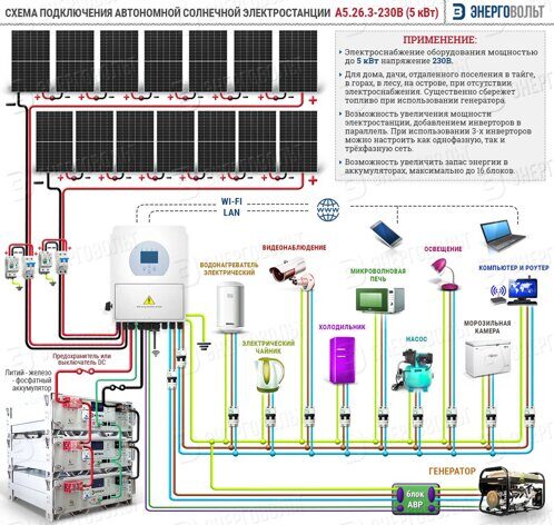 | Инвертор | Устройство, преобразующее постоянный ток в переменный | Обеспечивает совместимость с бытовой электросетью |